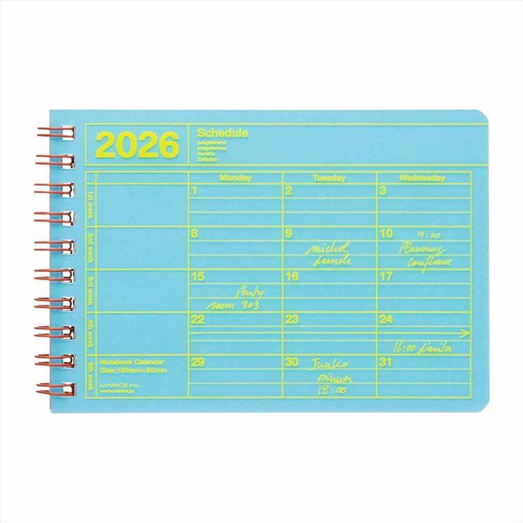 2026年1月始まり手帳 月間 B7変形 ノートブックカレンダー・XS ブルー