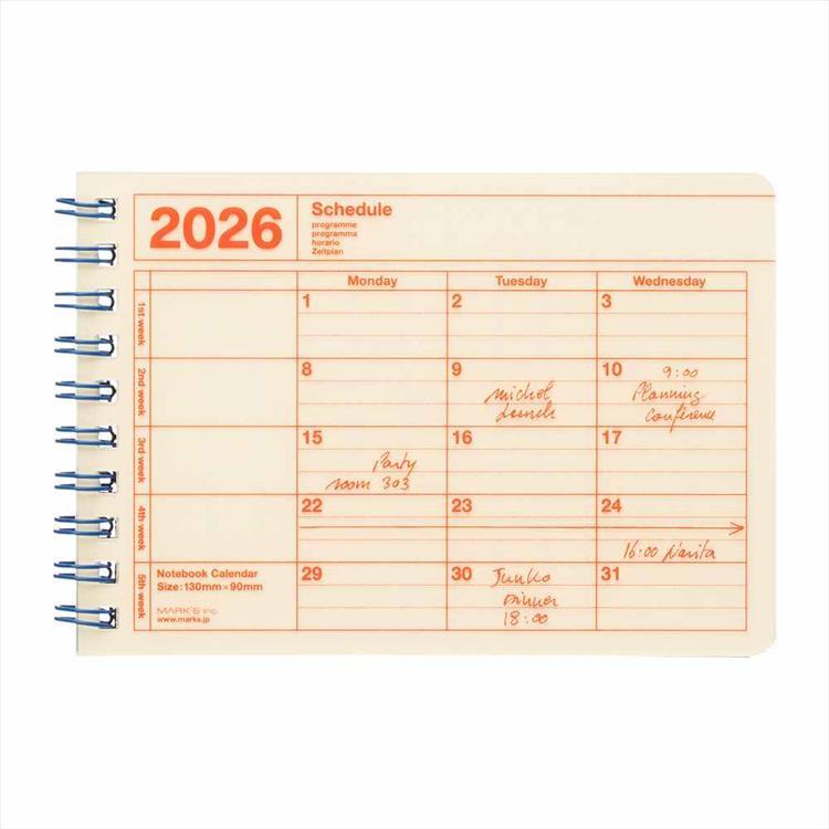 2026年1月始まり手帳 月間 B7変形 ノートブックカレンダー・XS アイボリー