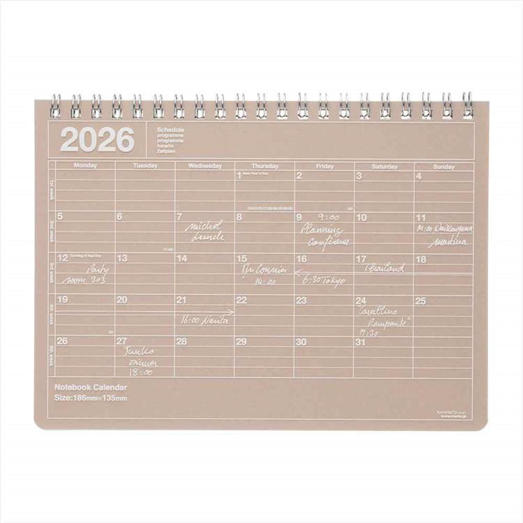 2026年1月始まり手帳 月間 B5変形 ノートブックカレンダー・M ブラウン
