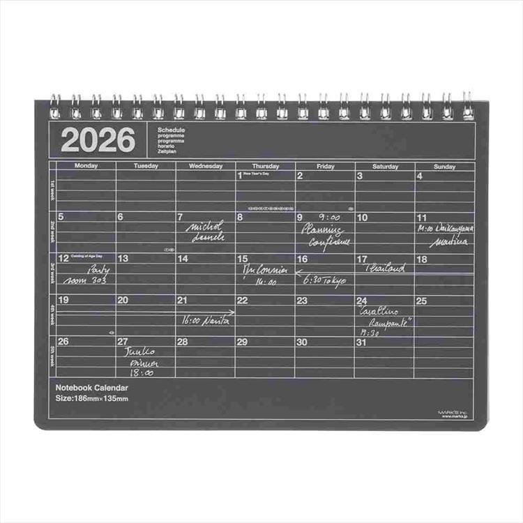 2026年1月始まり手帳 月間 B6変形 ノートブックカレンダー・S ブラック