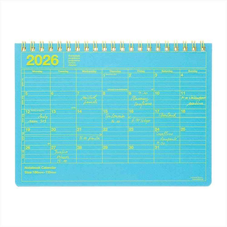 2026年1月始まり手帳 月間 B6変形 ノートブックカレンダー・S ネオンブルー