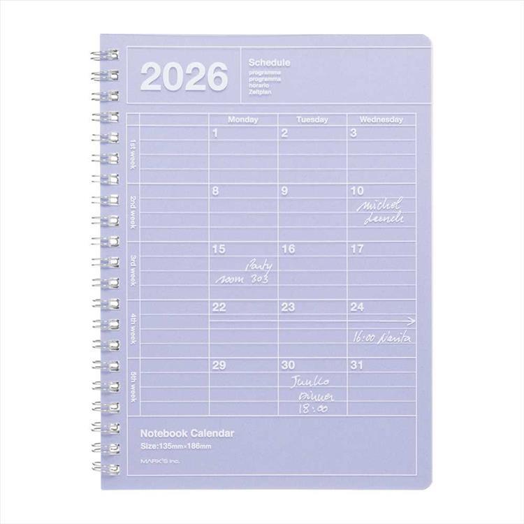 2026年1月始まり手帳 月間 B6変形 ノートブックカレンダー・S 縦型 パープル