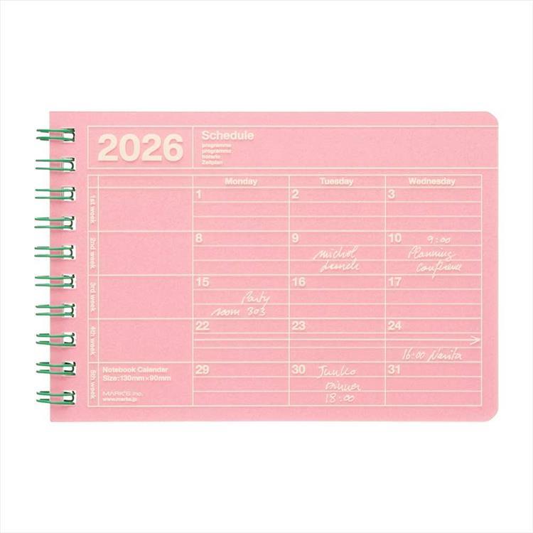- 2026年1月始まり手帳 月間 B7変形 ノートブックカレンダー・XS ピンク