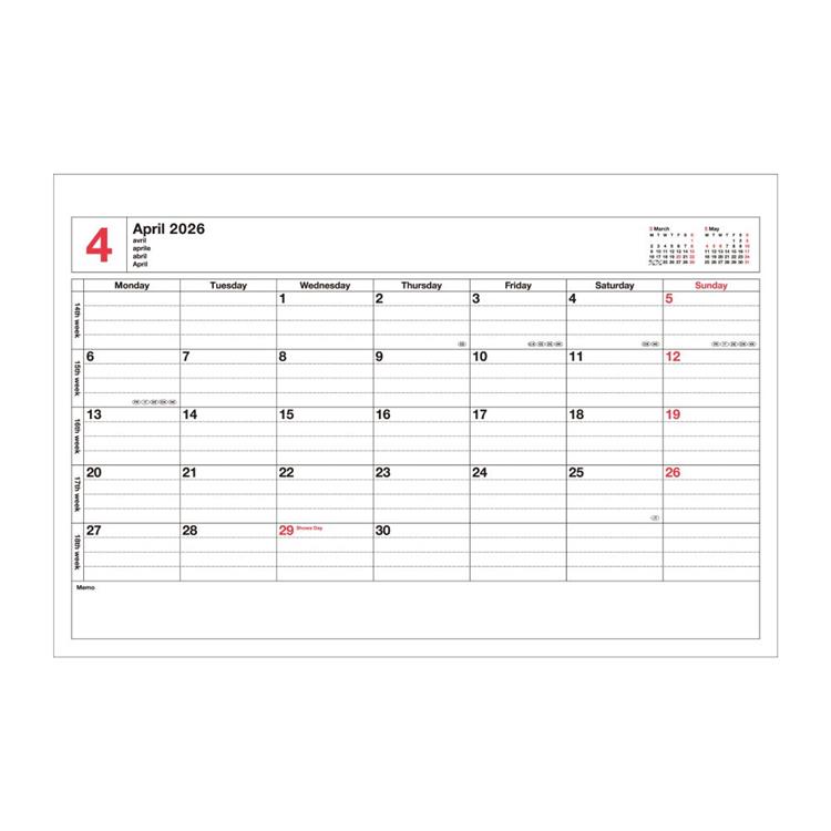 - 2026.01~2026.12、(カレンダー)12枚、(方眼罫メモ)24枚、(クリアポケット)5枚、TODOリスト