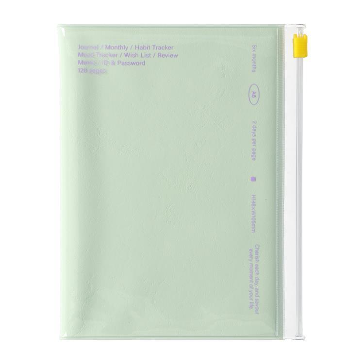 ライフログ用日付フリー手帳 A6 ファンログ クリアスライドジッパー ミント