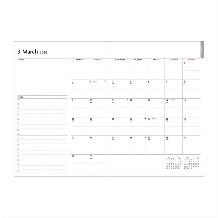 - (マンスリーページ)2025.12~2027.03、(ウィークリーページ)2025.12.01~2027.01.03