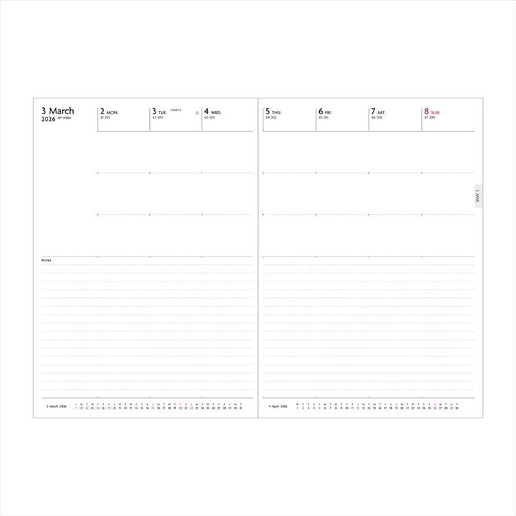 - (マンスリーページ)2025.12~2027.03、(ウィークリーページ)2025.12.01~2027.01.03