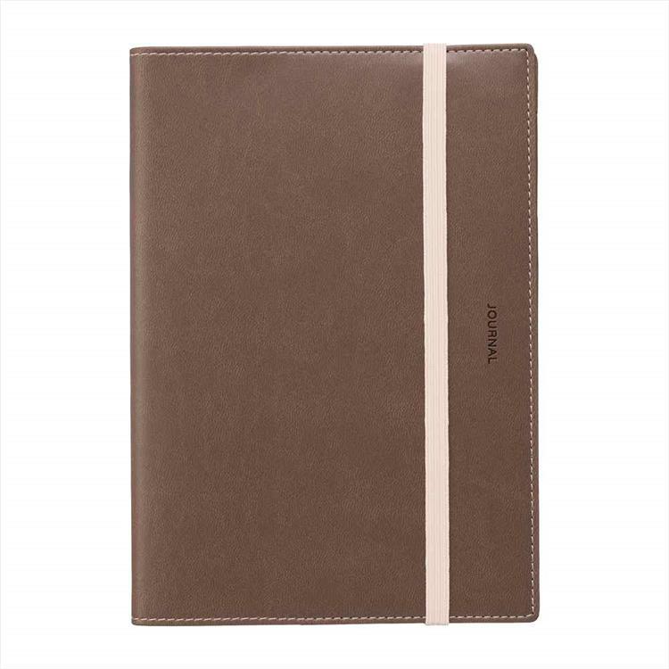 PU生地に型押しが施されたシンプルなデザイン。表紙とゴムのバイカラーがポイント。