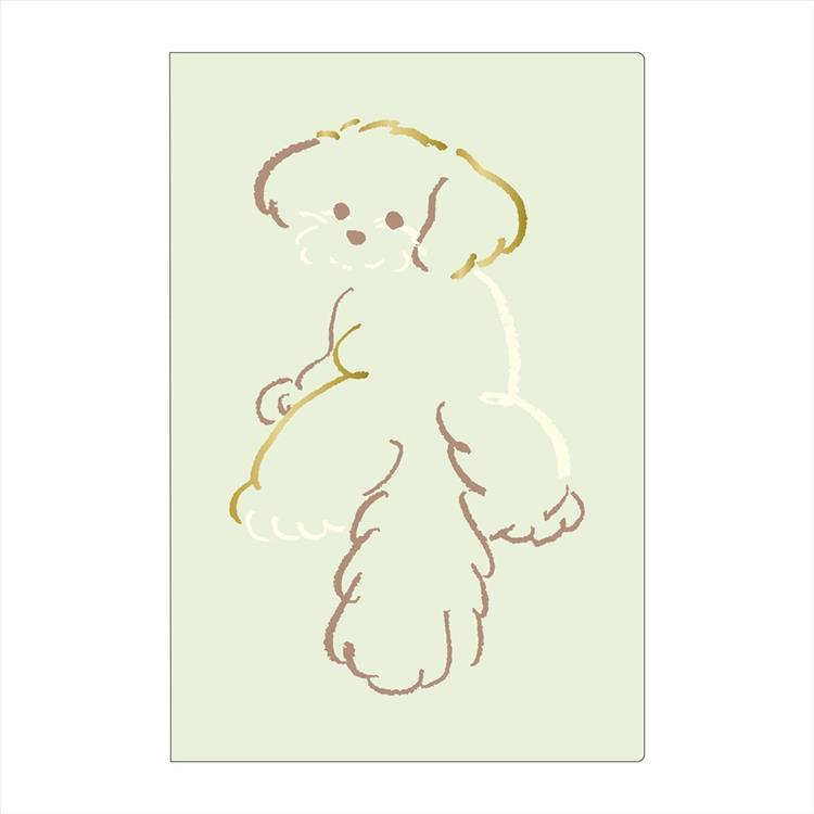キュートな表情の犬がポップな色使いと箔押しで表現されたカバー。