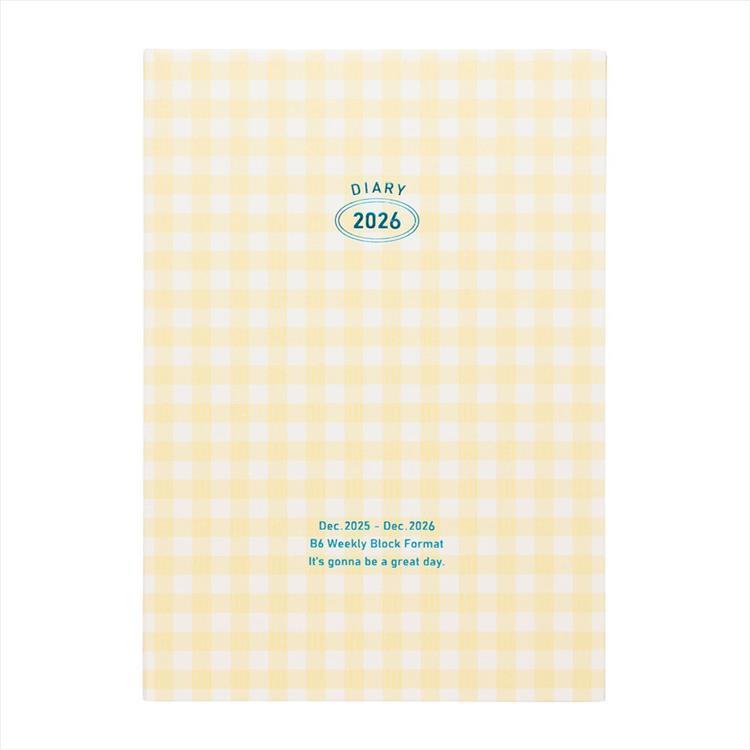- 2025年12月始まり手帳 週間ブロック B6 ハードカバー ギンガムチェック イエロー
