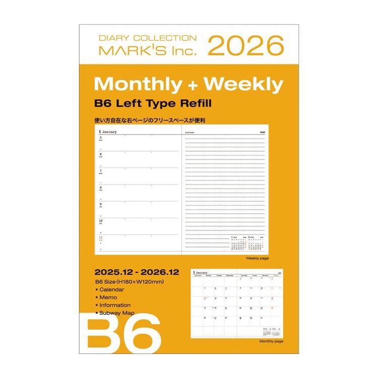 - 2025年12月始まり手帳 週間レフト B6変形 リフィル
