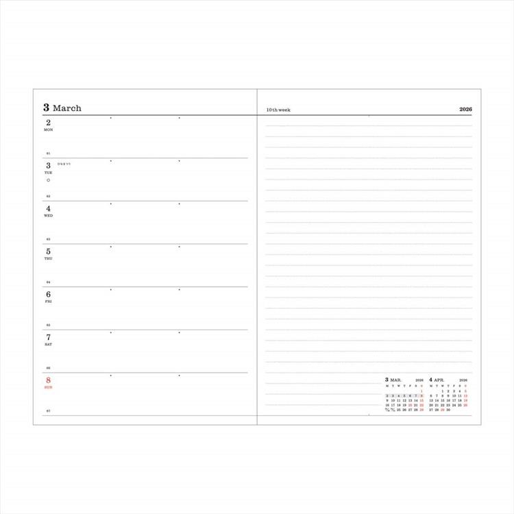 - (マンスリーページ)2025.12~2027.01、(ウィークリーページ)2025.12.01~2027.01.03