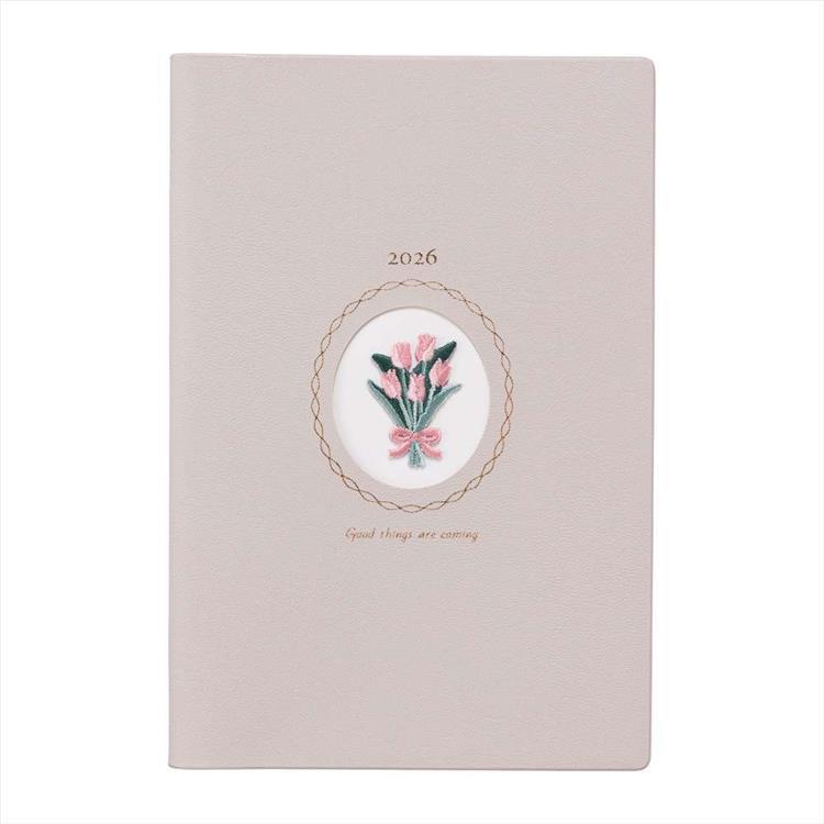 - 2025年12月始まり手帳 週間レフト B6変形 ワンポイント刺繍 チューリップ