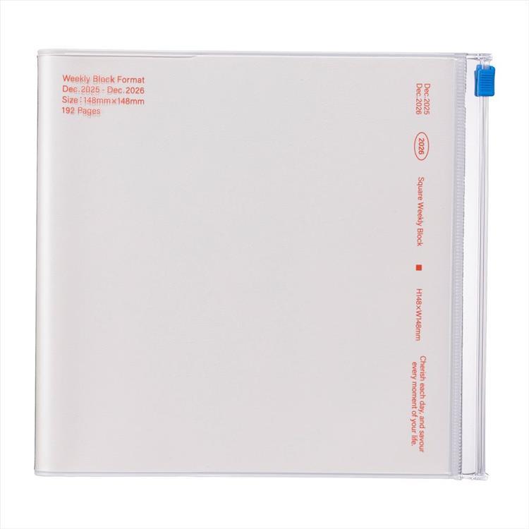 2025年12月始まり手帳 週間ブロック A5 スクエア クリアスライドジッパー アイボリー