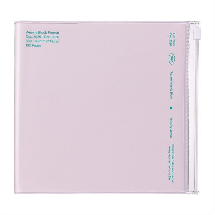 2025年12月始まり手帳 週間ブロック A5 スクエア クリアスライドジッパー ピンク
