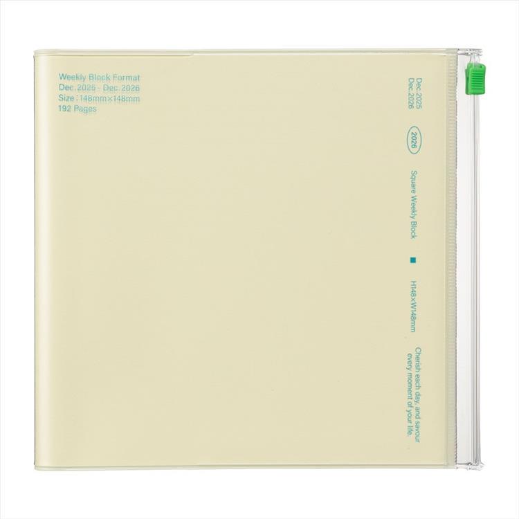 - 2025年12月始まり手帳 週間ブロック A5 スクエア クリアスライドジッパー イエロー