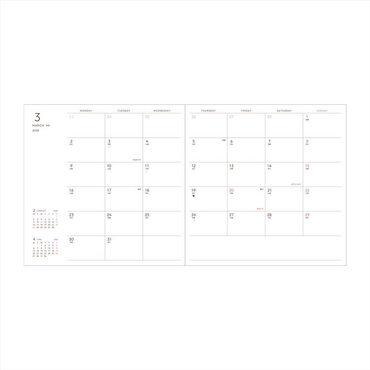 - (マンスリーページ)2025.12~2027.01、(ウィークリーページ)2025.12.01~2027.01.03