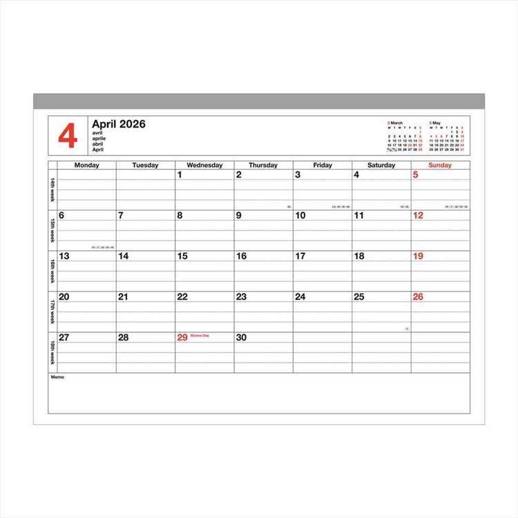 シーンを問わずに愛用できるシンプルなデザインで、カレンダー感覚で使える見やすさとたっぷり書き込めるメモページ付き。