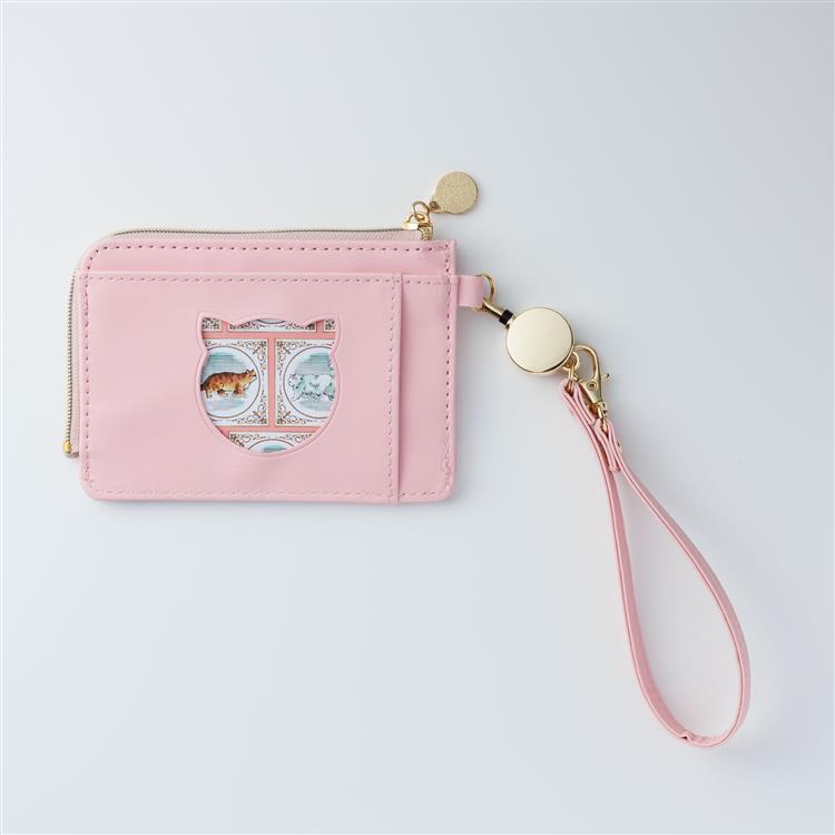 ネコ型窓のデザインがキュートな出し入れしやすいカードスロットタイプ・パスケースです。