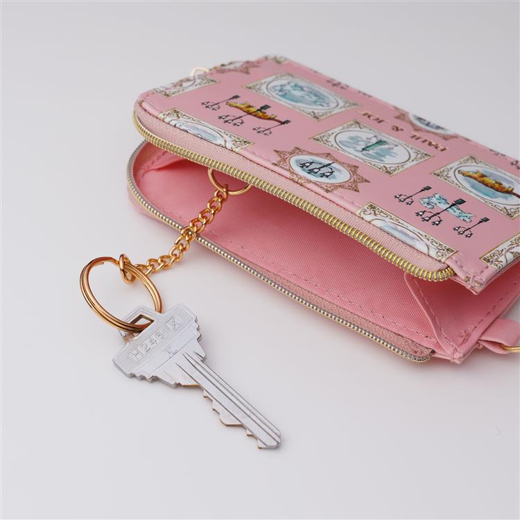 ミニ財布としても活躍するファスナー式メインコンパートメントは、鍵を付けられるキーリング付き。