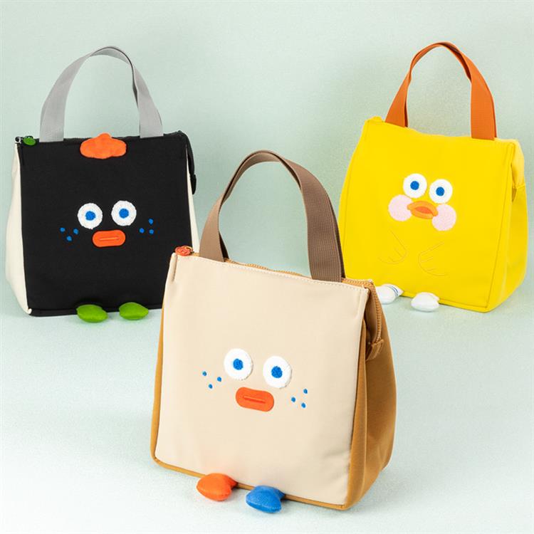 トースト、ダック、オニ&ギリのきょとんとした表情や、ちょこんと出た足がかわいいランチバック。
