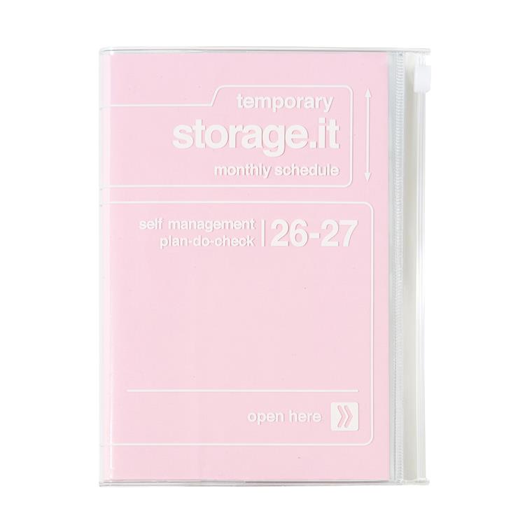 2026年3月始まり手帳 月間 B6変形 ストレージイット テクスチャー ピンク