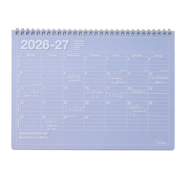 ●掲載内容・2026.04~2027.03(カレンダー12枚)・祝日表示(日・米・英・仏・伊・西・独・中国・香港・韓国 海外祝日はアイコン表示)・ウィークナンバー・年間カレンダー(1枚)・罫線メモ(カレンダー裏13枚)