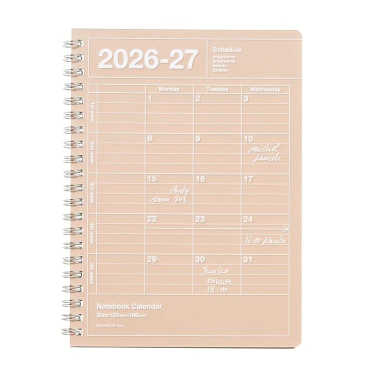 2026年4月始まり手帳 月間 B6変形 ノートブックカレンダー S・縦型 ブラウン