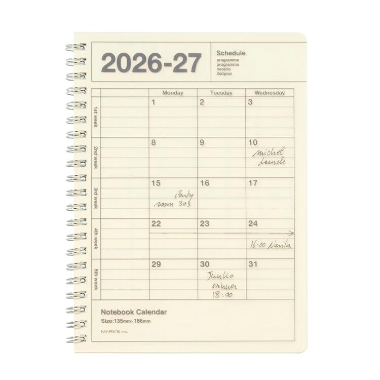 2026年4月始まり手帳 月間 B6変形 ノートブックカレンダー S・縦型 アイボリー