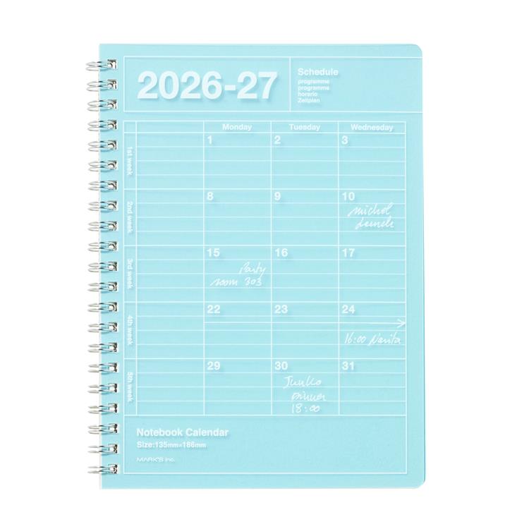 2026年4月始まり手帳 月間 B6変形 ノートブックカレンダー S・縦型 ブルー