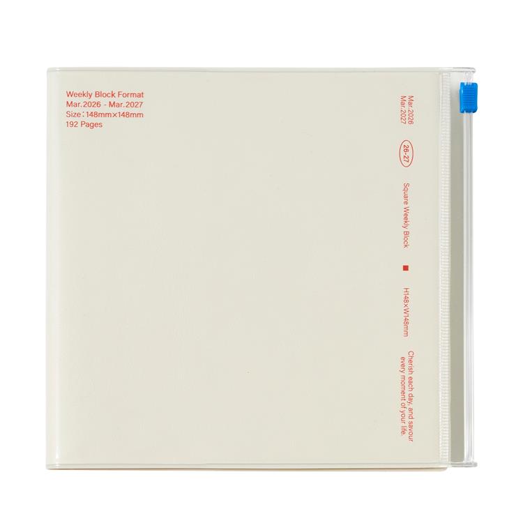 - 2026年3月始まり手帳 週間ブロック スクエア クリアスライドジッパー アイボリー
