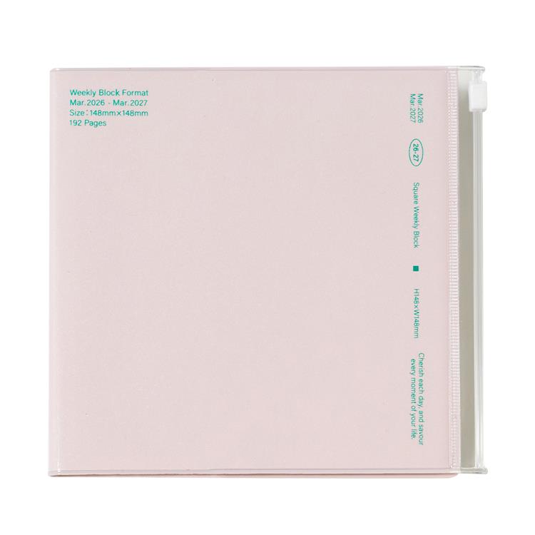 - 2026年3月始まり手帳 週間ブロック スクエア クリアスライドジッパー ピンク