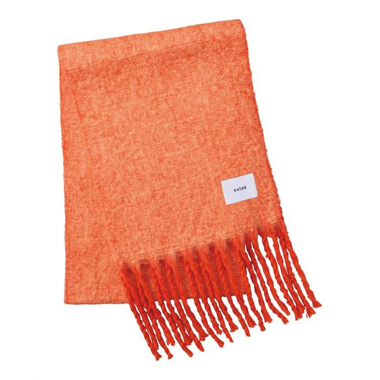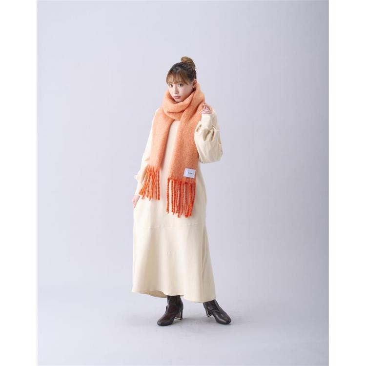 縦糸と横糸の色を変える事でやわらかなシャンブレーの色合いがと温かさを演出し、撒いていても洋服になじむデザインのマフラーです。