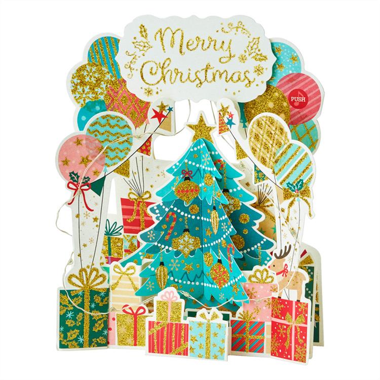 - クリスマス ライト&メロディーカード カラフルライト付き 風船とツリー