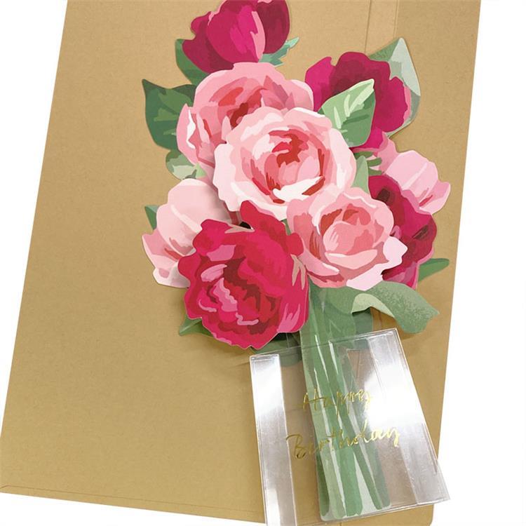 透明な花瓶と金箔の文字がアクセントの立体誕生日カード
