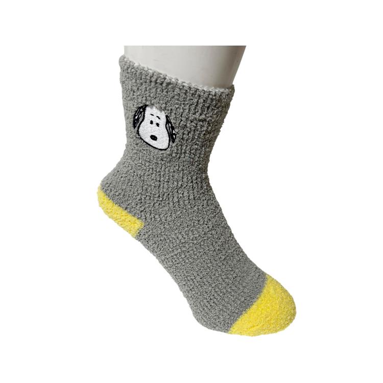 スヌーピーの刺繍がアクセントになったもこもこ靴下です。