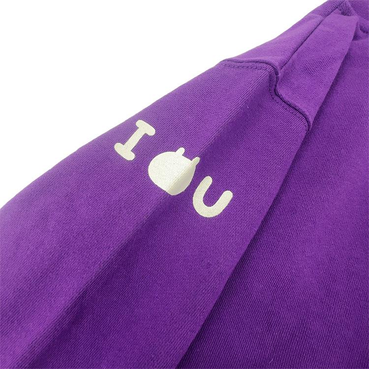 袖の部分にも「I LOVE(うさまるの顔型) U」の文字がワンポイントで入っています。