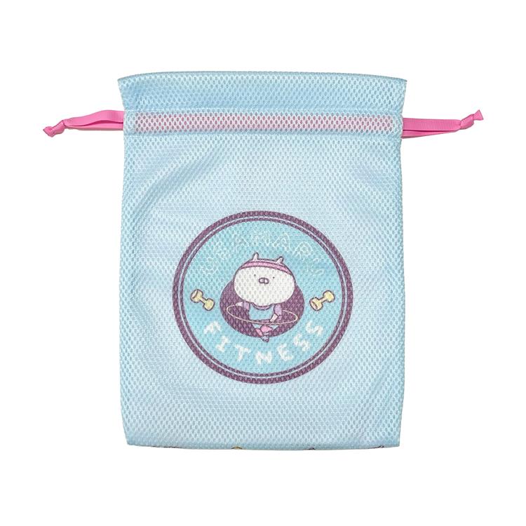 フィットネスをテーマにした「うさまる」のランドリー巾着
