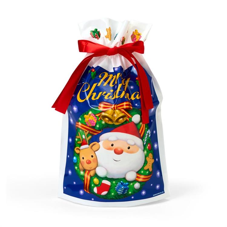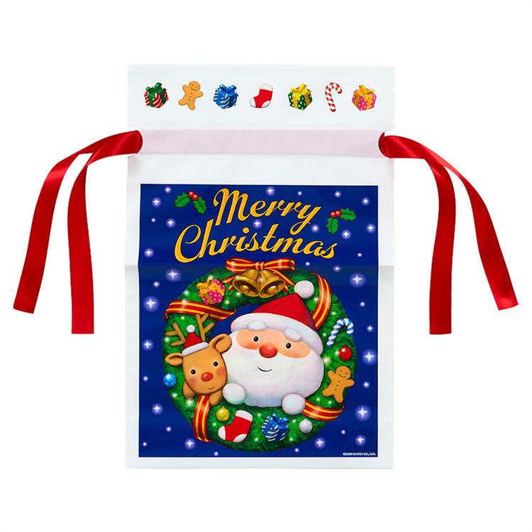 簡単手軽にラッピングできる巾着式クリスマスリボンバッグ。