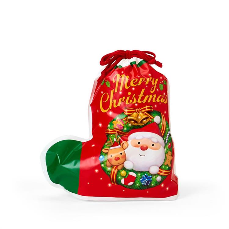 ソックス型デザインがクリスマスらしくて可愛い 巾着式ギフトバッグです。