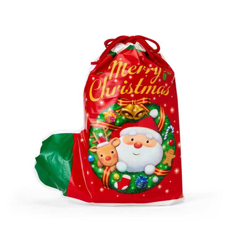 ソックス型デザインがクリスマスらしくて可愛い 巾着式ギフトバッグです。
