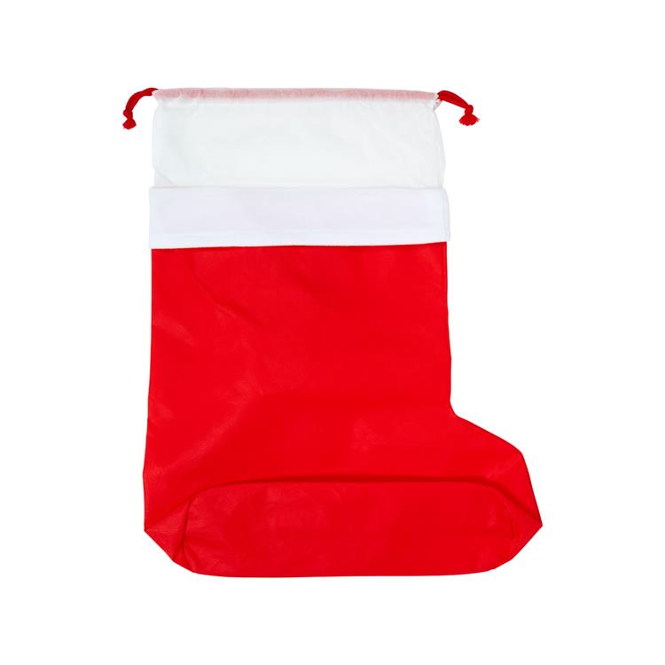 ブーツ型デザインがクリスマスらしくて可愛い 巾着式ギフトバッグです。