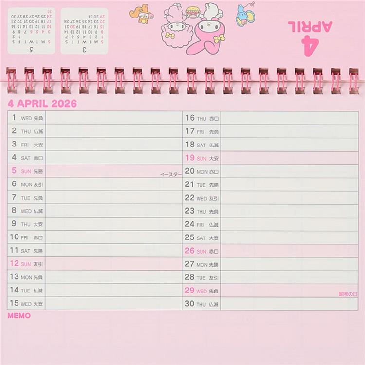 - 2026年1月始まりカレンダー 卓上 リング サンリオキャラクターズ マイメロディ