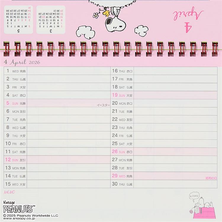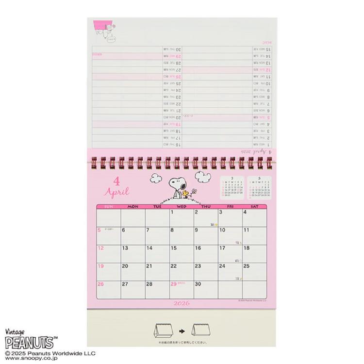 - 2026年1月始まりカレンダー 卓上 リング PEANUTS スヌーピー
