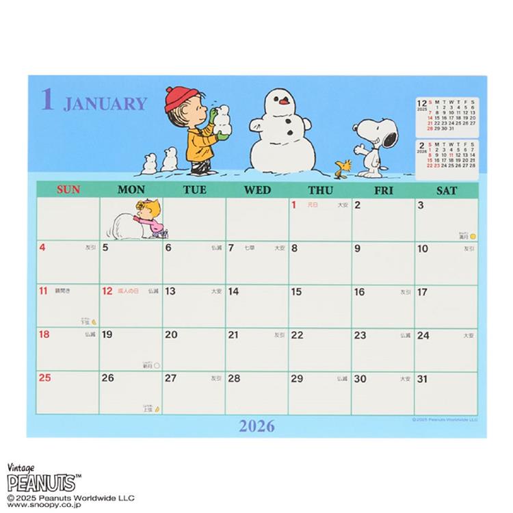 - 2026年1月始まりカレンダー 卓上 シート PEANUTS スヌーピー