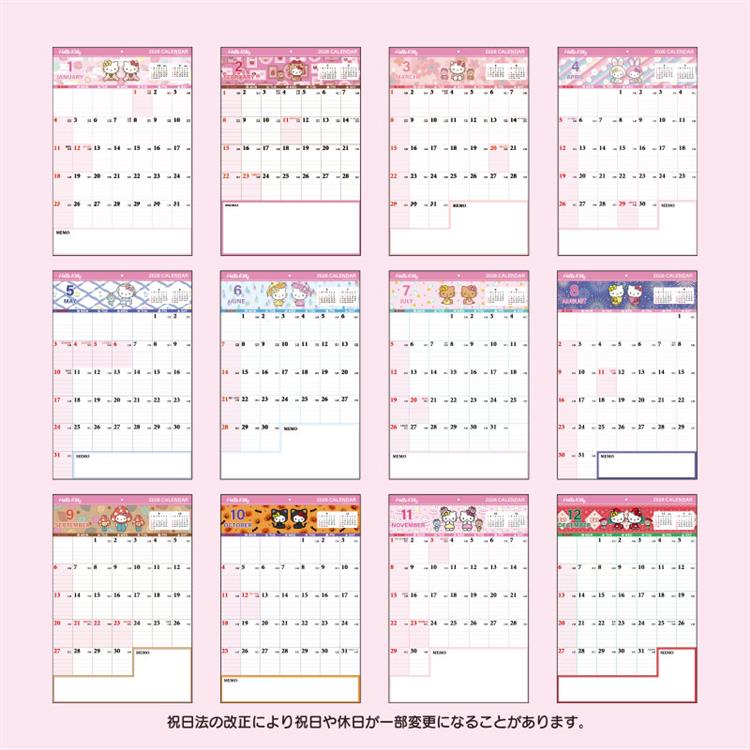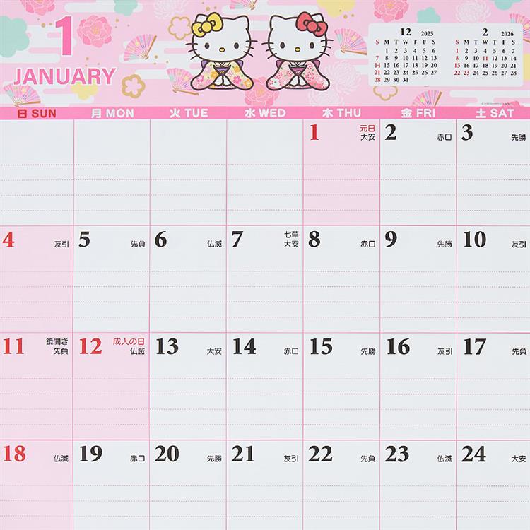 - 2026年1月始まり 壁掛け 書込みカレンダー サンリオキャラクターズ ハローキティ
