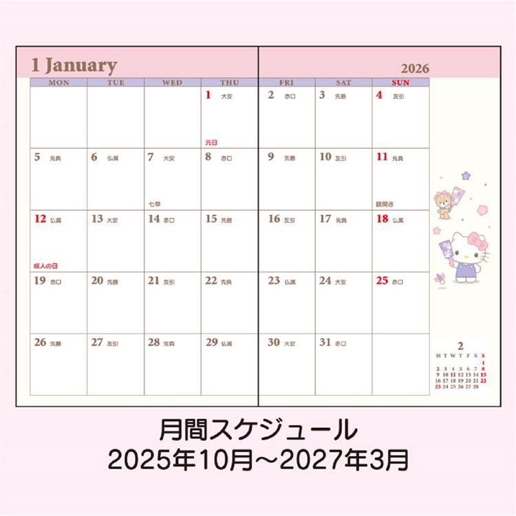 - 2025年10月始まり手帳 月間 B7 サンリオキャラクターズ ハローキティ