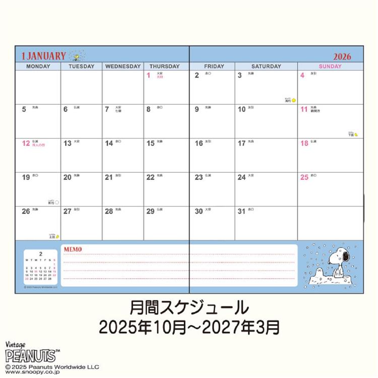 - 2025年10月始まり手帳 月間 B6 PEANUTS スヌーピー