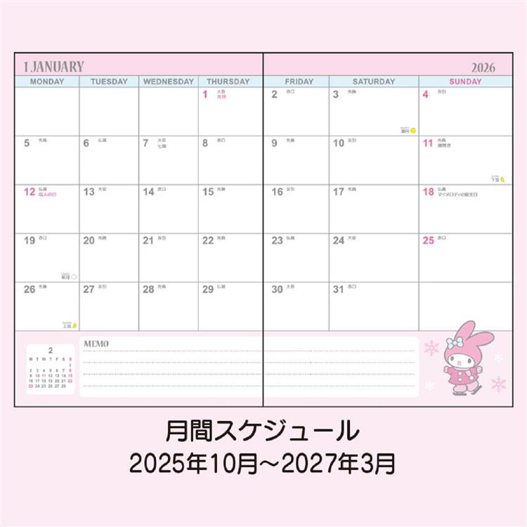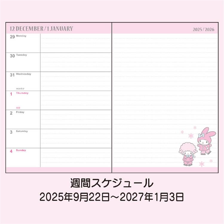 2025年10月始まり手帳 週間レフト B6 サンリオキャラクターズ マイメロディ
