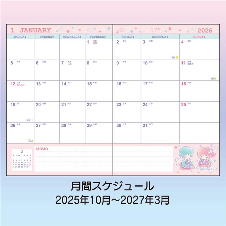 2025年10月始まり手帳 週間レフト B6 サンリオキャラクターズ リトルツインスターズ